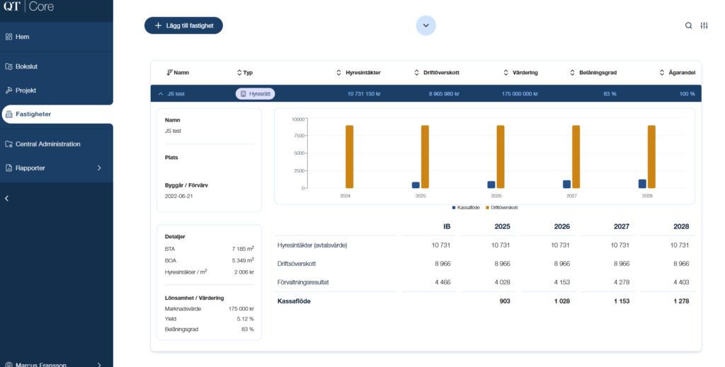 Core är i grunden ett avancerat beslutsstöd och verktyg för att kunna skapa förståelse och trygghet oavsett om det handlar om finansiering, projektutveckling eller att få en chans att stresstesta olika scenarios. För detta lägger vi vikt vid att kunna generera relevanta rapporter och beslutsunderlag.